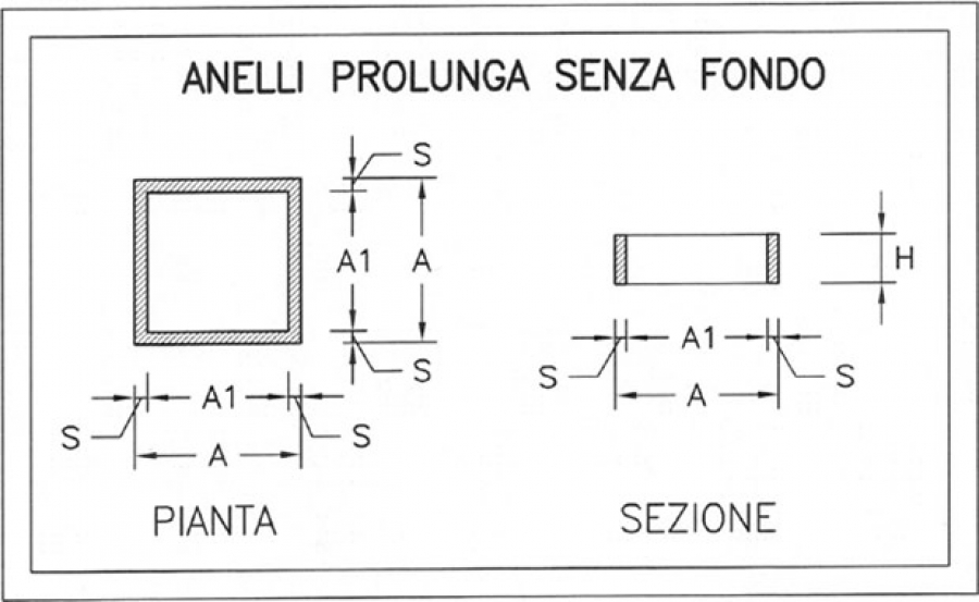 Anelli prolunga senza fondo a pianta quadrata in cls. vibrato PREZZO SU RICHIESTA
