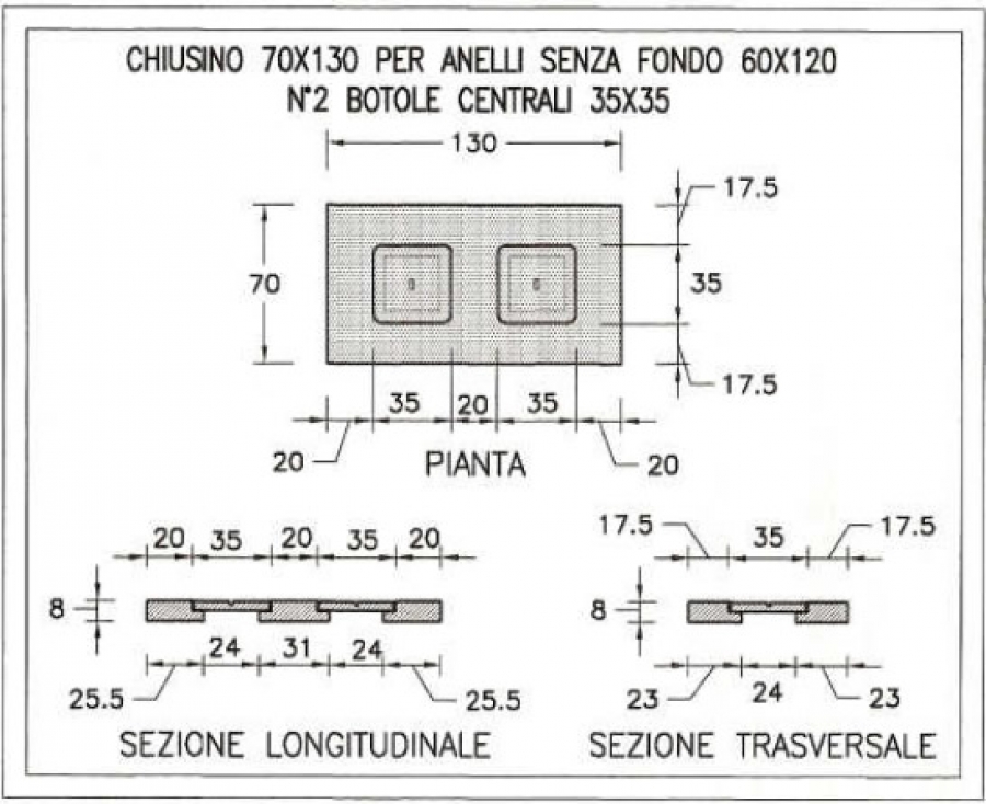 Chiusini tipo leggero a pianta rettangolare PREZZO SU RICHIESTA